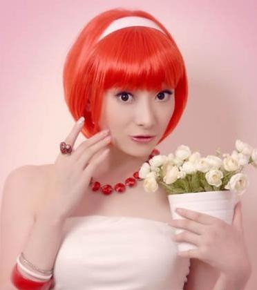 可爱的娃娃妆造型红色头发很吸引