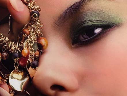 眼影避免选择过于饱和的色彩,冷色系的像蓝、绿、紫都要尽量避免,偏棕色系的像是古铜色、烟灰色或大地色系最合拍,而金属光泽的眼影,可以弱化因为眼袋而带来的丧气感。