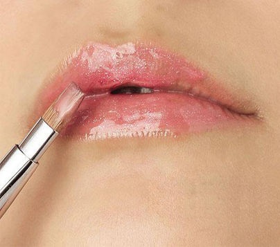 6. 先涂匀粉红色唇膏,再将珍珠粉红色唇彩涂上,唇妆立刻立体起来。