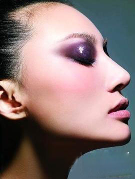 持续流行的烟熏,色彩渐变为神秘的紫色,流光溢彩的眼影质感,配合接近本色的哑光素唇,一个高贵的中性美女,呼之欲出。