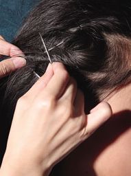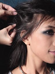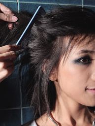 STEP2 用发泥将刘海往上、两侧头发往中间做出“鸡冠头”型