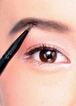 2.由于杨采妮的眉毛比较粗,因此需要将上下眉线勾勒出来,再用颜色把它填满,建议用灰色的眉笔或眉刷,画出来会比较自然。