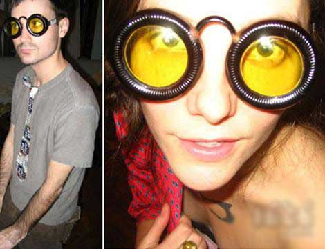 这眼镜不错吧,超级时尚!不过这镜片是换过的,其它都是啤酒瓶材料,镜框是瓶底和瓶身、而鼻梁的是瓶口。喜欢!自己造一个,不过这还是要有相当的技术,by Urban Spectacles。