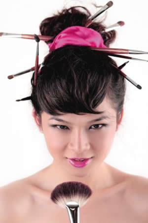 根据唇膏质地,与润肤霜或者润肤露混合,然后用腮红刷根据脸型刷向两颊。圆脸斜扫,长脸圆扫。为了保证色彩匀称,在扫向两颊前,也须在手掌鱼际部位去除多余霜露。或者用两掌大鱼际部位先把唇膏和润肤霜或者润肤露混匀,然后斜向或者打圈状抹上两颊。