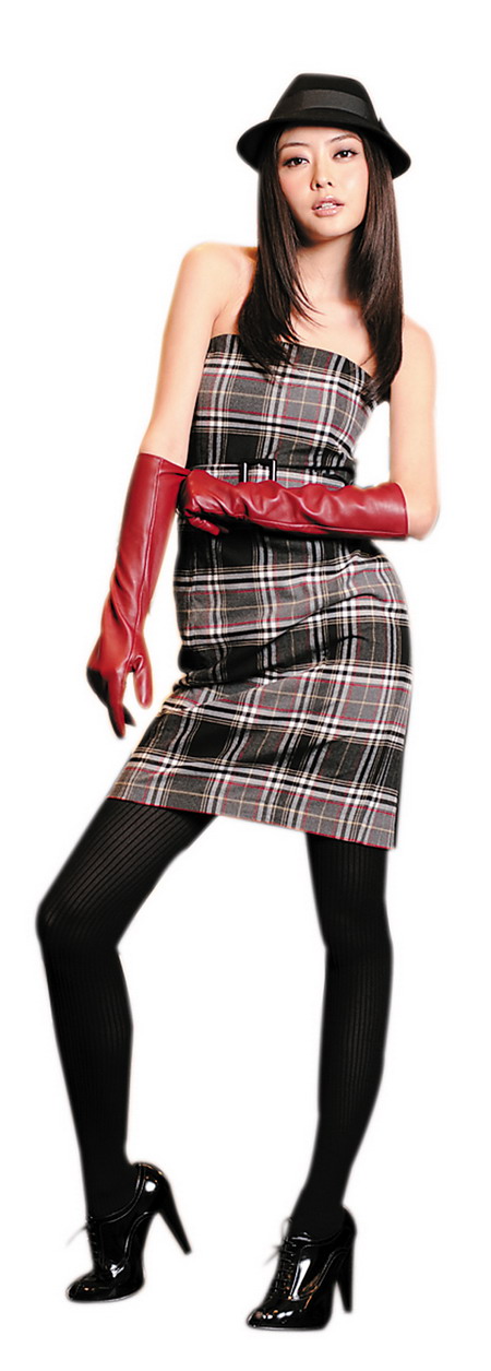 格子 剪裁干净利落的格仔礼服,前卫与典雅并重,而且容易配衬。 黑灰格子小礼服 约1,290元 灰色绒帽 约690元 红色皮手套 约1,090元 黑色袜裤 约390元