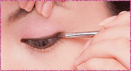 眼尾的上下眼线一定要连起来,不能上扬而且上眼尾要加粗,就能制造出让眼睛变弯弯的弧度。