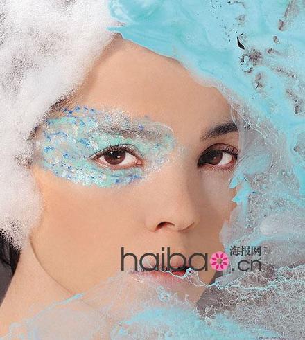 如湖水一般清澈的蓝绿色,色调清新亮眼。以深浅两色的渐变或是对比方式运用,能让双眼瞬间充满神采。将蓝色眼影当作眼线使用,上下双色眼线的搭配可以增强眼部立体感,令双眸更加明亮有神。
