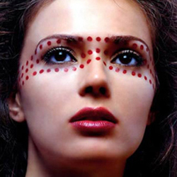 2、做眼部按摩,用少许按摩霜,以中指由眉心开始轻轻往外向下按压,顺着上下眼盖绕成一圆圈,重复做6次。