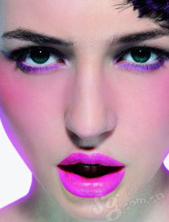 不得不说,紫色,已经成为2009年春夏T台上流行的大趋势,尤其是紫色的唇。它先是在Todd Lynn的T台上风行,后来在各个大牌的时装展上肆虐。Makky,M.A.C首席化妆师说:“这季你会看到80年代的影响在风行,浓重的眼妆,突出的唇妆,都证明了这一点。”Makky曾选用了M.A.C的紫色散粉轻轻扑在唇上营造出珍珠粉般的效果,搭配脸部水润的肌肤,让美看起来如此地触手可得。