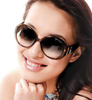 夸张的大镜框造型,深色调的渐近颜色镜片,塑造优雅神秘的女性