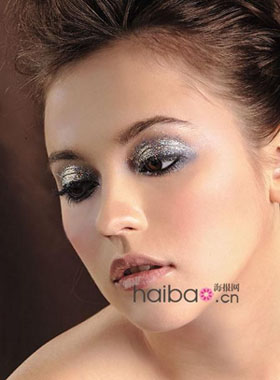 彩妆教室教你如何化彩妆:亮片银色烟熏眼妆