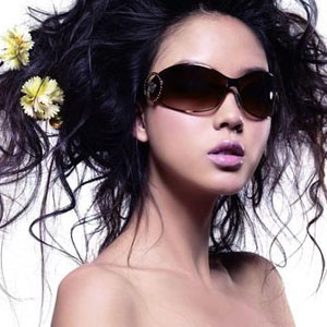 茶色镜片能遮蔽强光,又能很好掩盖眼部的过小的不足。在眼影的选择上也没有需要特别避免的色彩,所以眼妆手法参照上述的通常规则就可以。建议妆容的重点放在唇部,明快、有型的唇妆能打破茶镜带来的沉闷,是不可忽略的细节。