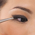 | 如果想利用小烟熏修饰、拉成长眼型,不妨将眼影拿出来当眼线使用吧!这种小烟熏的眼影式画法,选了咖啡色系就成功了一半。