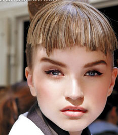 T台灵感:模特自然有光泽感的肤质,金铜色调渐变得恰到好处的眼妆,看起来大牌感十足。今年矿物彩妆大热,泛着诱人的金属光泽,你难道不想尝试一下吗?