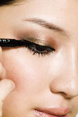 从上眼头画至上眼尾,线条略宽的呈现,描绘时越接近上睫毛根部越理想。