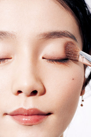 先用眼影刷蘸取适量肉色眼影打底,可与之后的颜色更好地融合。