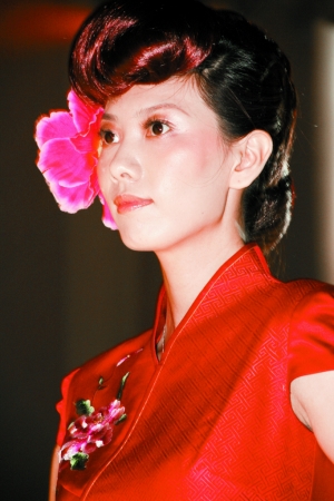 发型:表现东方风造型的精髓,就是充满光泽的乌溜溜秀发,并特别将侧发塞入耳后,使整个面容孔完全呈现出来。另外,些许的自然短刘海,能让脸型看起来稍为丰满,更增添俏皮玩味,削减了制式刻板发髻梳光前额的呆板,更能展现前所未有的古典风情。