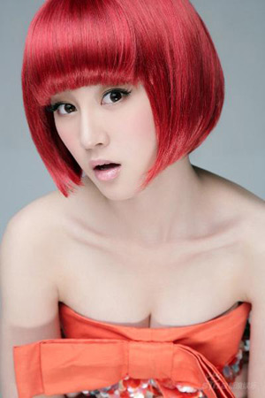鲜红发色的齐刘海波波头,在甜美乖巧中透着几分肆意不羁的诱惑。