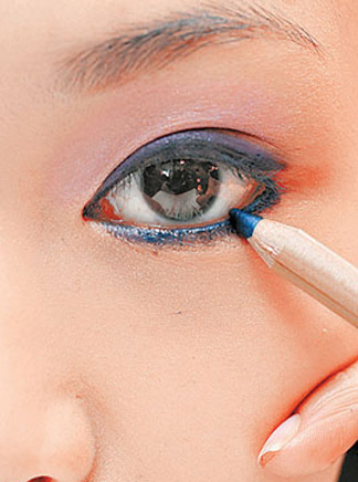 Step4 下眼睑用上蓝色眼线。