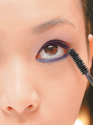 Step6 利用睫毛笔的末端,以左右轻扫的方法涂抹下眼睫毛。