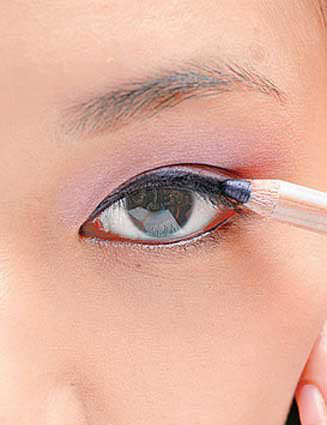 Step3 在上睫毛内侧画上紫色眼。