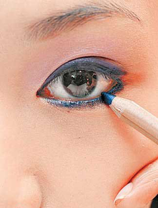 Step4 下眼睑用上蓝色眼线。