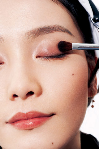 先用眼影刷蘸取适量肉色眼影打底,可与之后的颜色更好地融合。