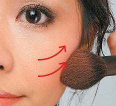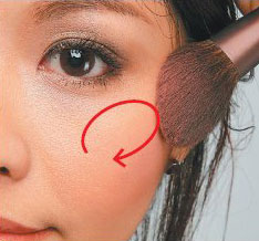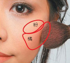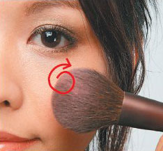 打圆:卡哇伊、甜美百分百画法是在正面,笑肌最高的地方,以打圆的方式,有内往外,渐渐晕开,制造自然的红晕感。