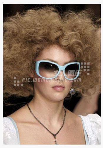 波浪卷发+偏红/紫的太阳镜,很适合成熟的OL,既突显女人味,又增添了性感的神秘感。