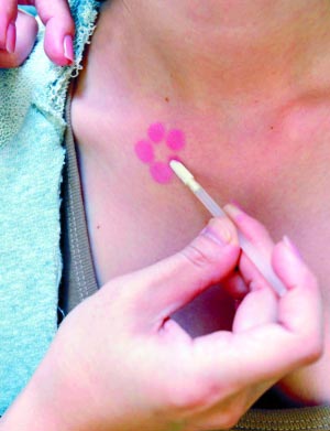 可能有人用过“口红留言”,其实,这种“留言”也能留在身上———变成身体彩绘。其实画一个彩绘并不难,只要有深色的口红以及足够的想像力。下班以后去Party,口红彩绘能让你有很高的回头率,也能让你玩得够HIGH。