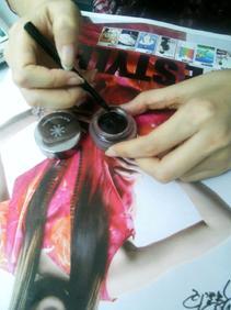 沾取适量的眼线膏,要均匀的沾取,不要弄一大块比较难画。