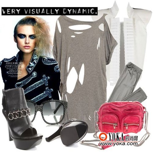 宫廷白衬衫 GARETH PUGH 约合人民币8145元,短靴 ALEXANDER WANG 约合人民币5096元,T恤衫 约合人民币1805元,红色挎包 Alexander Wang。