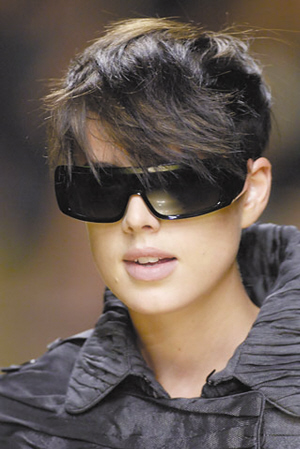 仿佛走出银幕的未来战士,坚定得甚至冷酷,纯黑色的镜面隐藏了框架,宽边镜腿,从任何角度都看不到眼睛。要搭配这样酷帅的太阳镜,要学会控制自己的表情,嘴角再小的一丝微笑都会给整体形象打折扣,看到别人羡慕的目光要坚持住,不能笑!