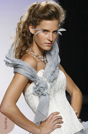 前几季惊艳无敌的羽毛妆在ruben perlotti新娘彩妆再次魅惑袭来。带有些许神秘气质的羽毛眼妆在ruben perlotti的秀上演着一些浪漫,也用淡淡的蓝色表达了对新一季的向往,令我们领略到魔幻一般的气质。
