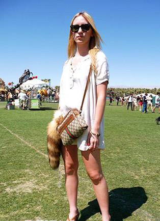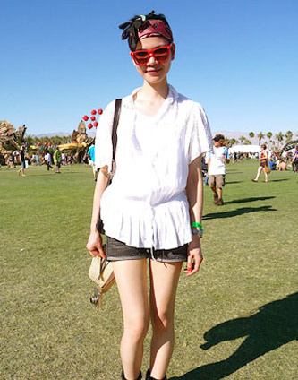 红框太阳镜在浅色衣服的映衬下更鲜亮。