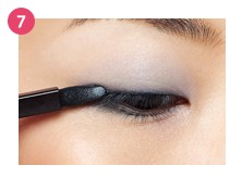 7 用眼影棒稍微晕开眼线,再次用淡蓝色眼影打上薄薄一层。