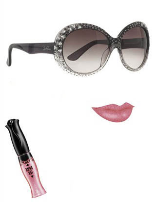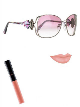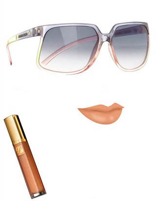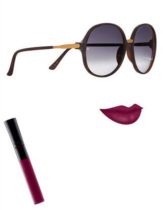 2.色彩要么对比,要么协调。如果是多色的太阳镜,唇妆色彩可以呼应其中的一种。