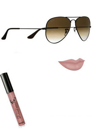 Ray Ban 经典飞行员眼镜+benefit-贝玲妃魅力四射唇彩 经典的 Ray Ban 茶色飞行员太阳镜,帅气的造型自然要选择自然系的成熟唇色,而不能搭配小女生式的粉嫩色彩。