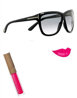 Tom Ford 大丽花太阳镜+LUNASOL 日月晶采魅泽唇彩 Tom Ford 的大丽花太阳镜,光凭名字就知道这是副性感的眼镜,偏偏选择黑色粗框,让人从古板联想到放荡,要用超炫的荧光粉色来加强这一特质。