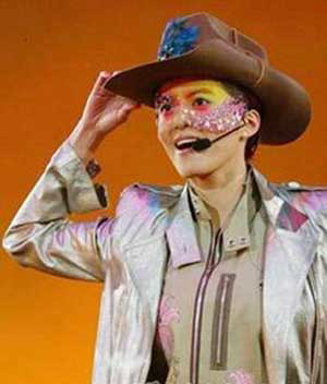 GiGi演唱会上的彩虹妆造型,素雅的gigi难得的浓妆,但是如彩绘般的效果在当时颇受好评。