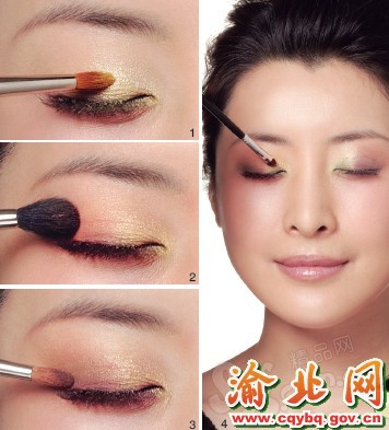 想要漂亮地画出四色渐变的效果,就需要注意小刷子的使用,眼影盒中配着大中小三号刷子,要对应相应的颜色,四色画起来就绝对轻松简单。