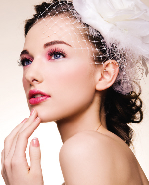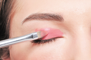 step 2 在眼窝位置扫上鲜粉红色霜状眼影打底。