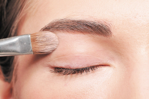 step 1 在眉骨位置涂抹上银白色眼影作高光,令眼形更凹凸分明。