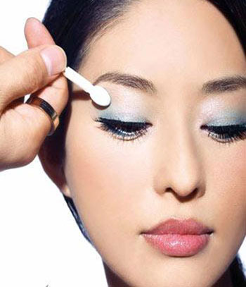 正确的化妆法,是先在浮肿的眼睛上使用暗色的眼影制造下陷的感觉,使眼部凹凸分明,轮廓明显。