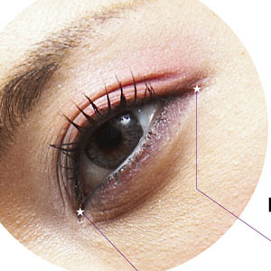 2.眼尾加重,眼尾三角地带是上下眼影的交会点,加深制造阴影,让睫毛看起来更浓、眼型跟着往上拉提。
