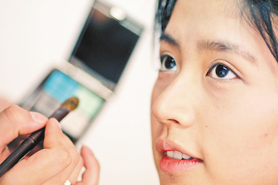 “夏天本身就很热,所以清爽的眼妆效果更好。”凌云志给9点半就“激动”赶到现场的陈曦炀一个“欲闪还遮”的动人眼妆,几近铜色的眼影在阳光照射下时而闪出一丝光芒。