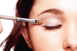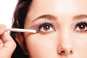 紫色其实可以很有型,不妨先使用霜状银白色眼影打底,再于眼窝中间扫上防水的彩蓝色眼影,然后,可在眼窝中间开始,向上打斜扫上深紫色眼影,仿如画一个平行四边形般,而啡红色的眼影则用来画下眼线,加以点缀,最后用液质眼线笔画下眼线更可令眼形变得更大。