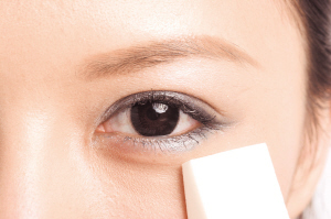 下眼线位置方法一样,只要用三角海绵较薄的一端轻擦即可。