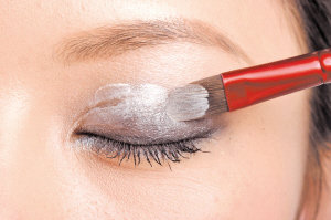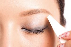 涂上黑黑灰灰的眼影后,想换成一个清新的粉色眼妆,用卸妆液?会让粉底一并被擦走,结果费时失事。最方便的方法,就是在眼盖位置点上白色膏状眼影,然后用三角海绵擦走,既不怕会擦走粉底,又可作打底用,一举两得。