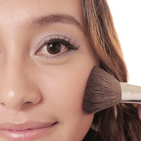 妆容改造Step7 step7 从笑肌往太阳穴斜扫腮红;